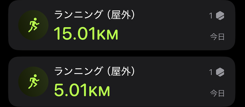 🔵今日のトレーニング/(昼)ラン5km、5:24/kmペース。(夜)15km、5:35/km。