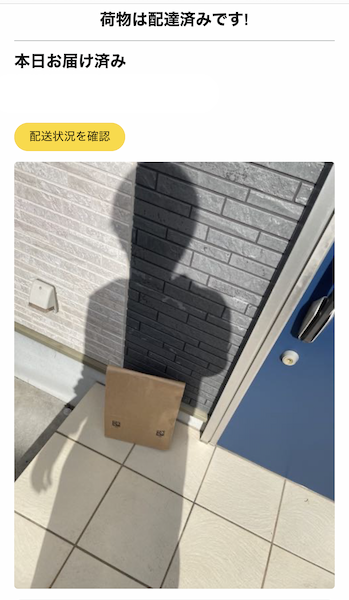 チェアとは別に、PC用スピーカーも届いていました。置き配だったのですが、この場合、ちゃんと置きましたよ、という写真がスマホに届きます。その写真が、これ。
