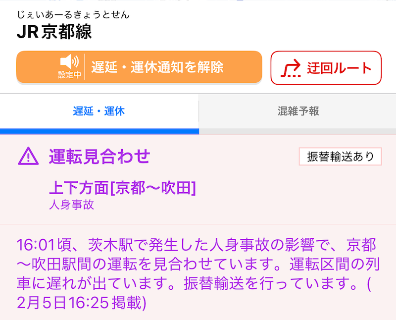 そして、今日。またまた人身事故で、運転見合わせ。勘弁してくれやぁ〜。