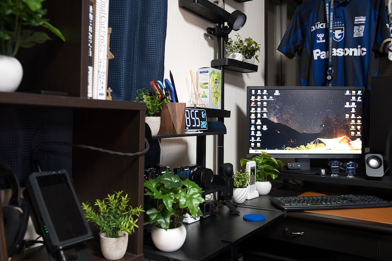 とろろで、最近、デスク周りにグリーンを置いています。フェイクですが、目に優しいのは変わりなく、癒されます。