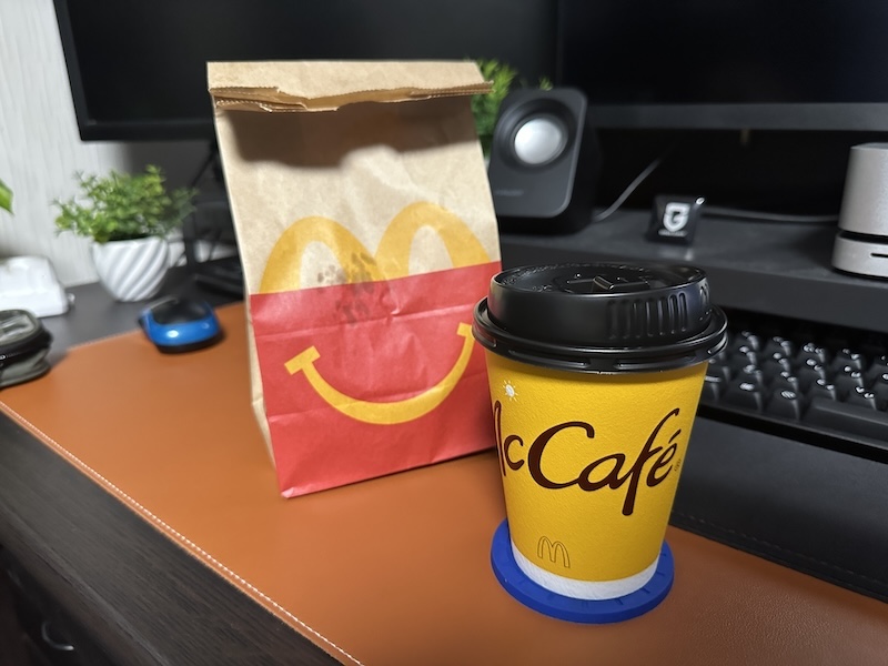 今日は平日ですが、朝マック(ドライブスルー/持ち帰り)でスタートしました。