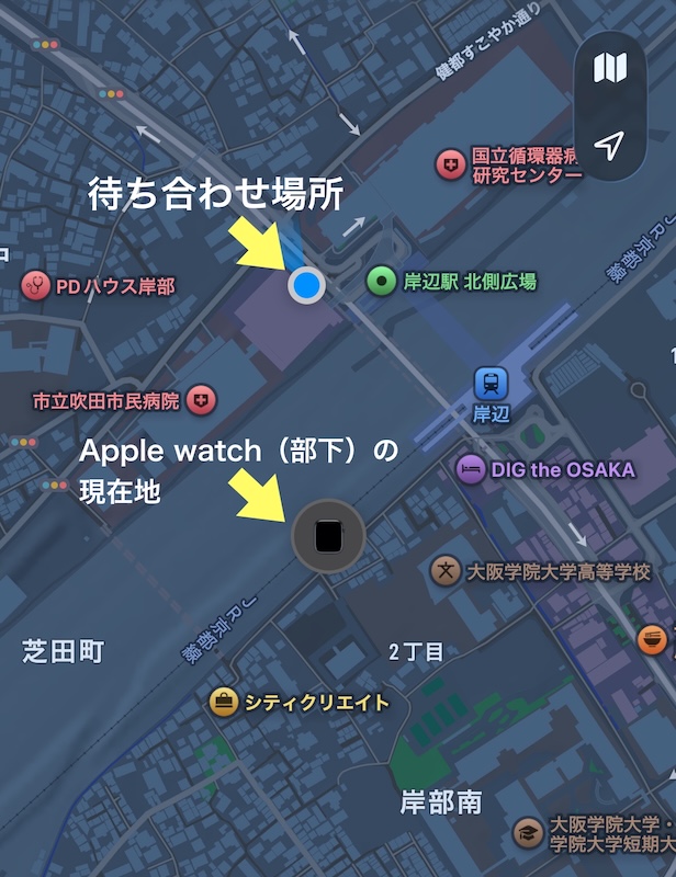 Apple Watch(部下)の位置は、スマホで確認できるので、イライラすることもありませんでした。