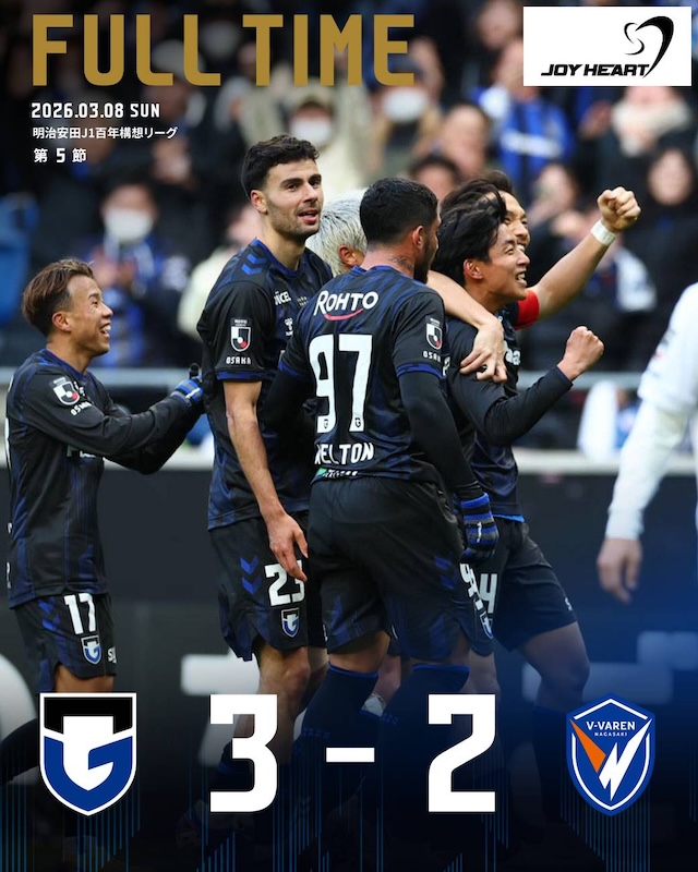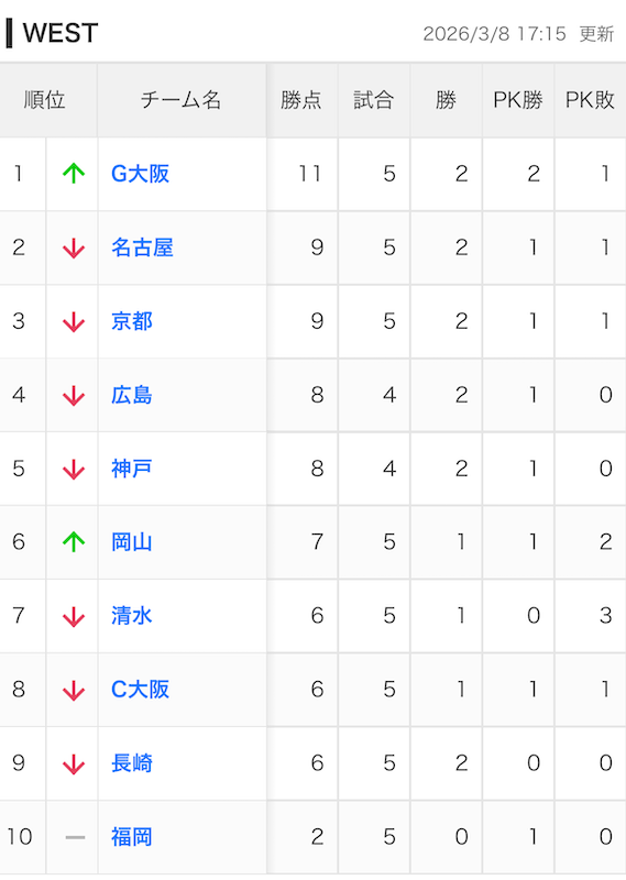 そして、ガンバは首位へ。ライバルの広島と神戸より1試合多いですが・・・