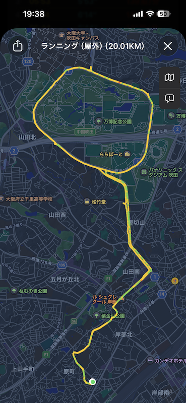 🔵今日のトレーニング/ラン20km、5:39/kmペース。午前中、万博外周をランニングすると、ガンバ大阪が勝つ!というジンクスは、今日も健在でした。
