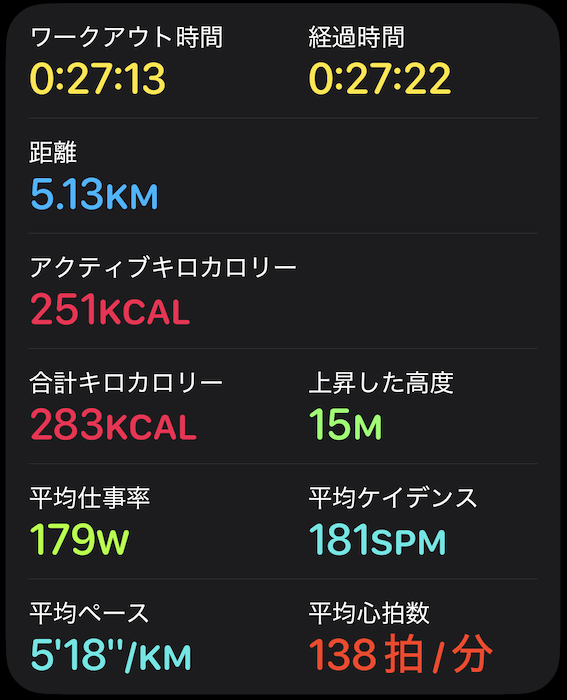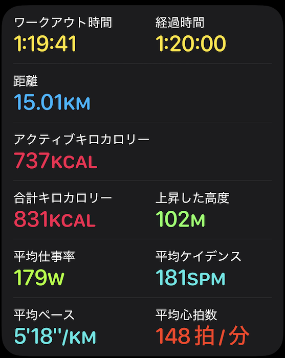 今日はリモートワークだったので、ランニングの2部練習を実施しました。昼夜とも、平均5:18/kmという、充実&納得のペースでした。先日は半袖Tシャツ+短パンでしたが、今日は気温が下がったこともありウインドブレーカー+ロングタイツという装いでした。気温が下がったことも、いいペースで走れた要因だと思います。私の今の実力は、下記の通りです。