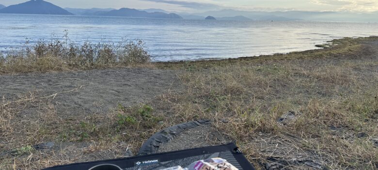 今、滋賀県高島市にある六ツ矢崎浜オートキャンプ場に来ています。思ったより寒くなく、快適に過ごしていま …